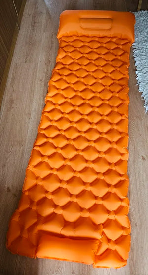 Our inflatable sleeping pad transforms outdoor nights into cozy retreats, ensuring ultimate comfort with a built-in pillow and easy inflation.